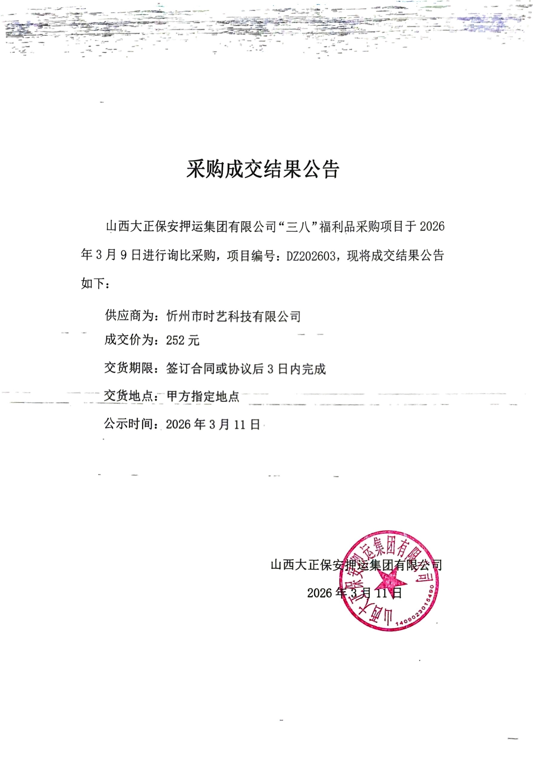 成交結(jié)果公示