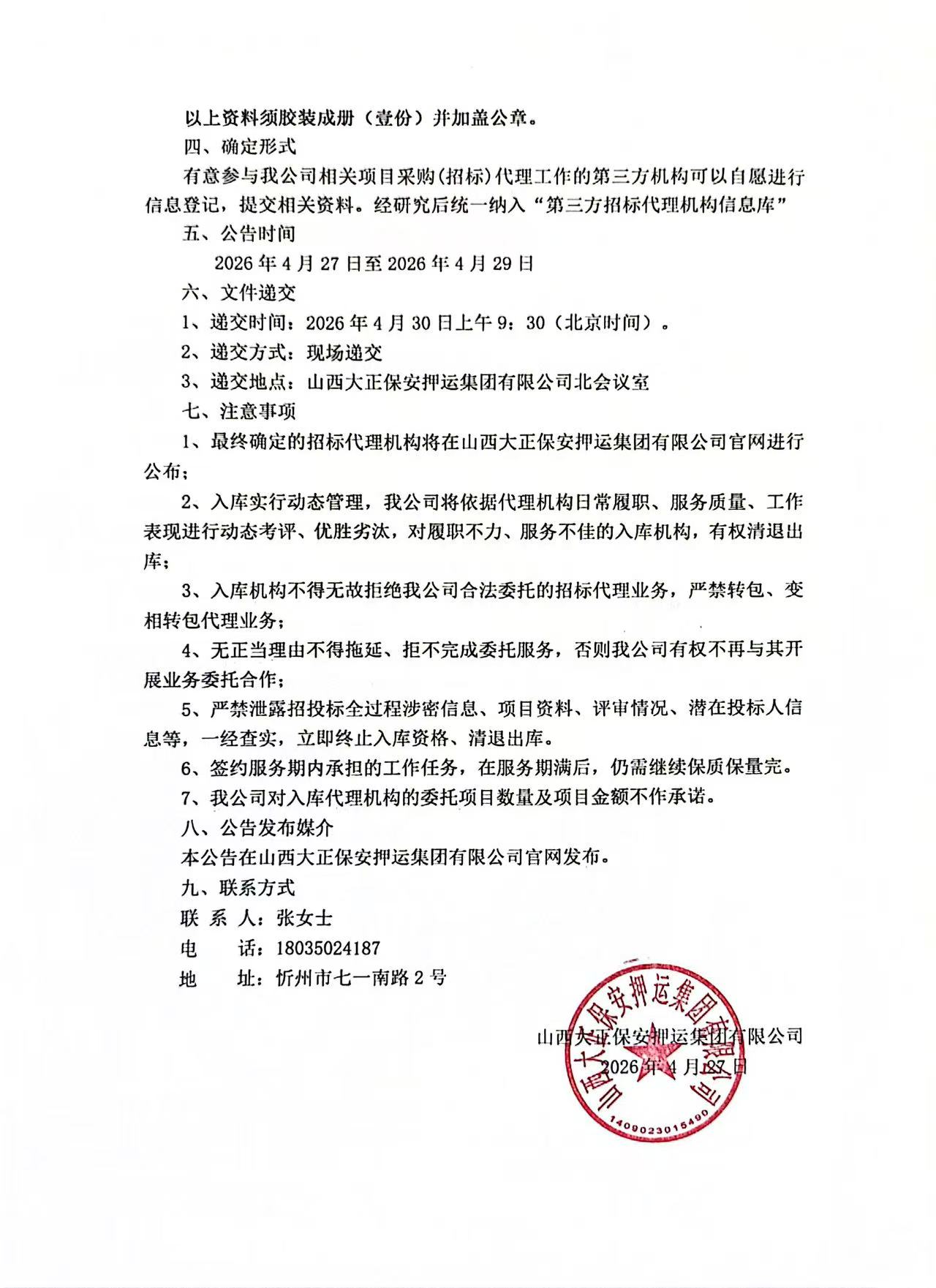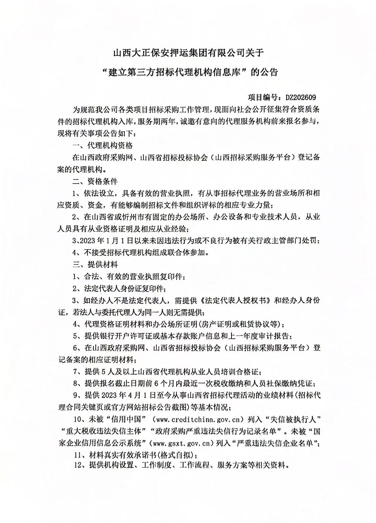 關(guān)于“建立第三方招標(biāo)代理機(jī)構(gòu)信息庫”的公告